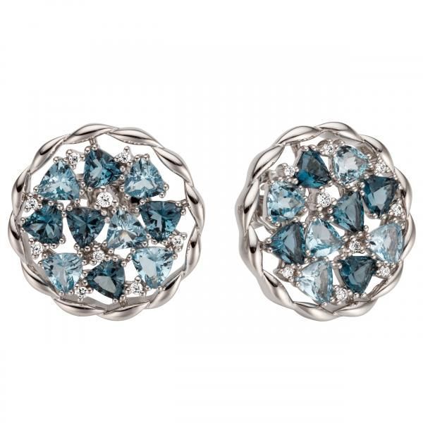 JOBO Ohrstecker 585 Weißgold 20 Blautopase 18 Diamanten Brillanten