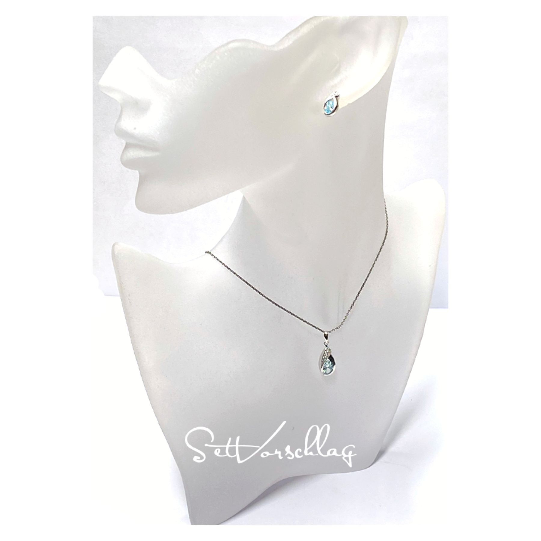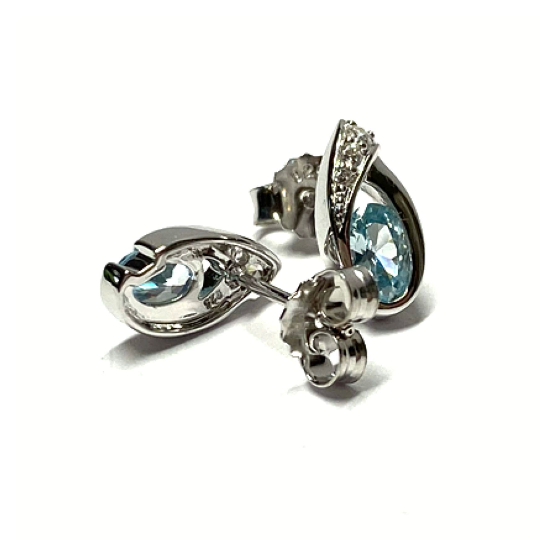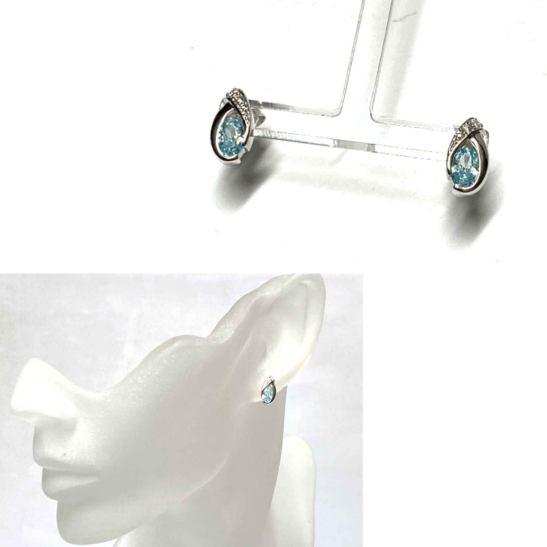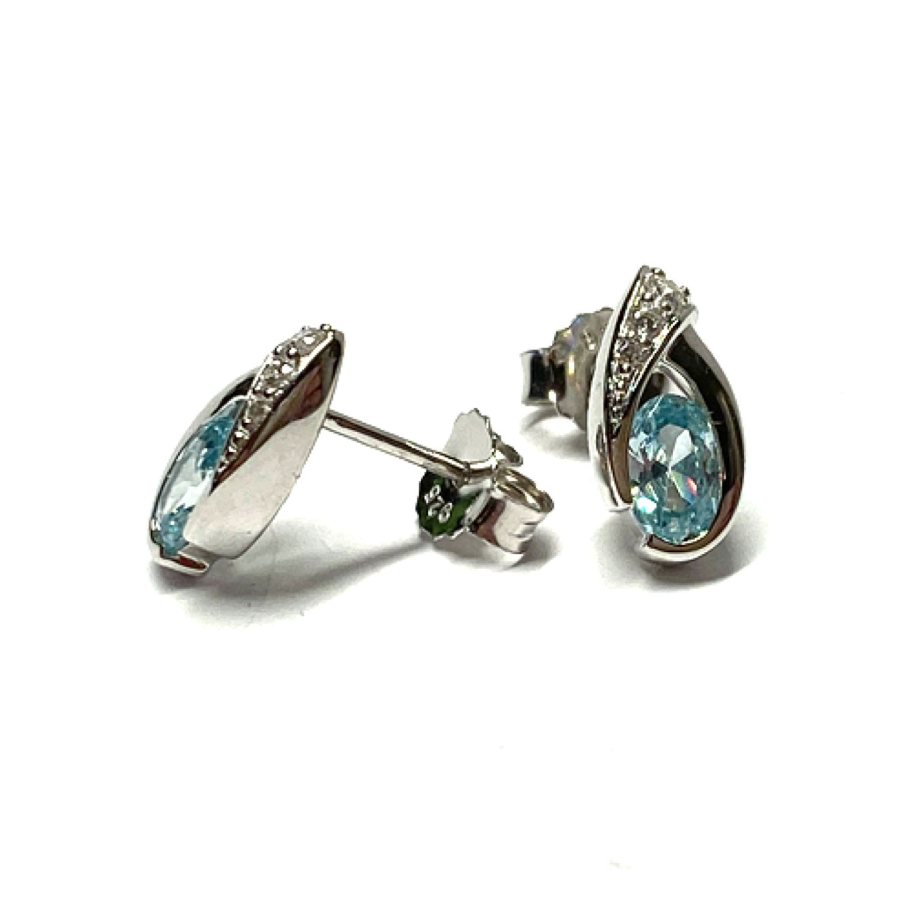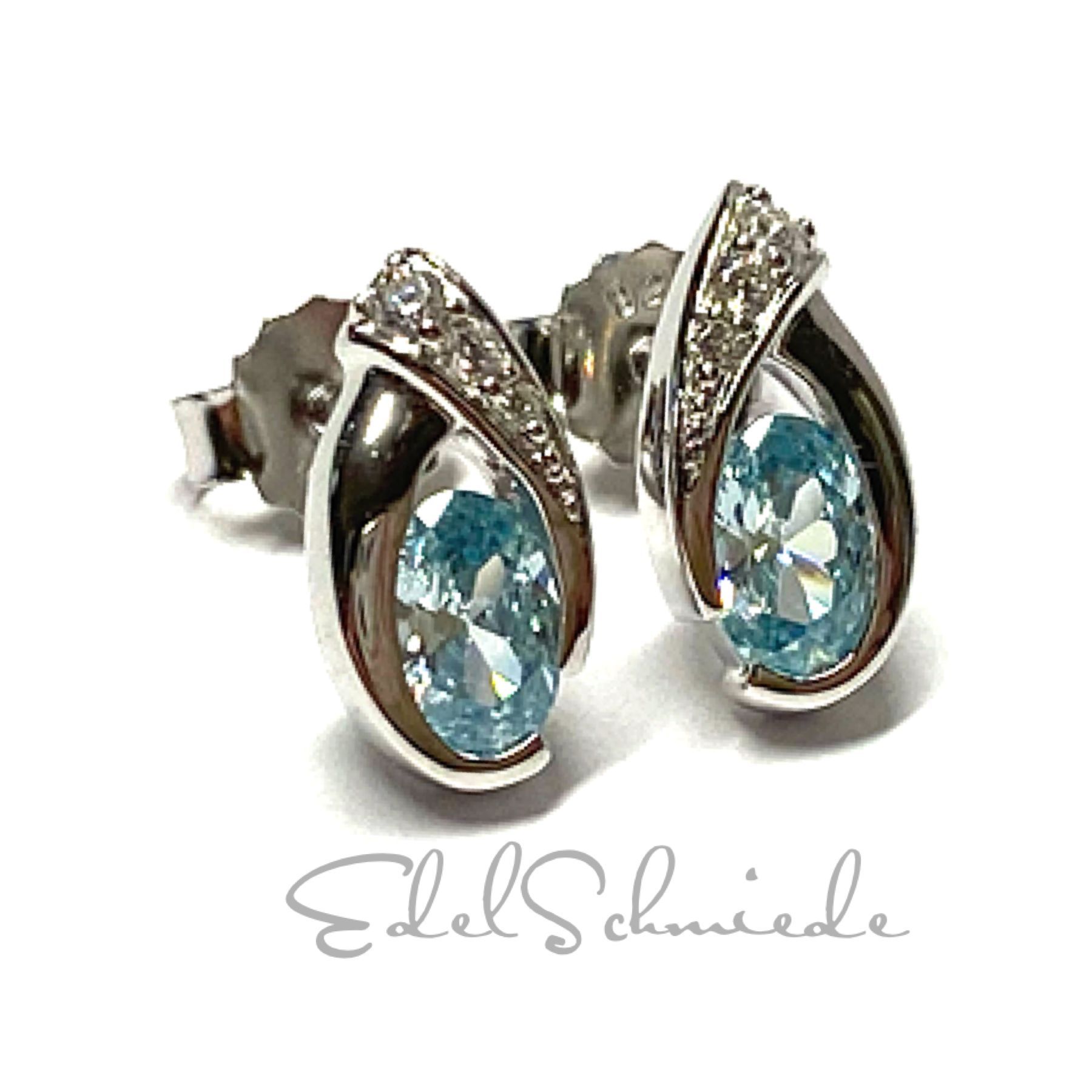 Ohrstecker 925- Silber Zirkonia hellblau oval facettiert + Zirkonia weiß Ohrring