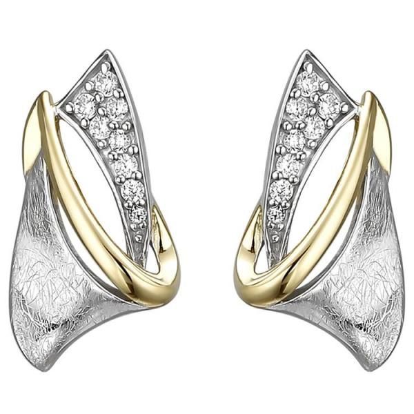 JOBO Ohrstecker 925 Sterling Silber bicolor vergoldet eismatt 16 Zirkonia Ohrringe