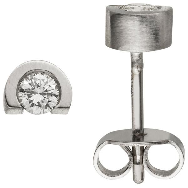 • Ohrstecker rund 950 Platin mattiert 2 Diamanten Brillanten 0,10ct