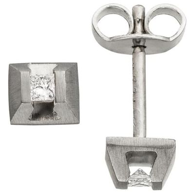 • Ohrstecker eckig 950 Platin matt 2 Diamanten Ohrringe Platinohrringe
