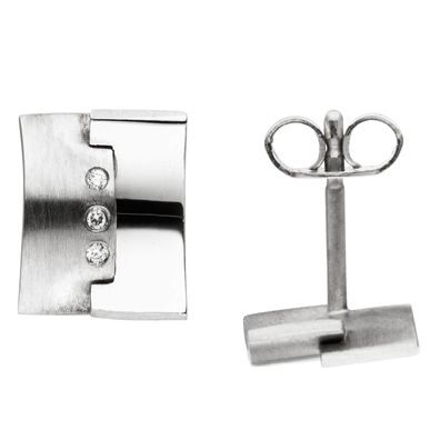 • Ohrstecker dreieckig 950 Platin mattiert 2 Diamanten Brillanten Ohrringe