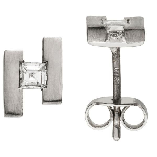 JOBO Ohrstecker 950 Platin matt 2 Diamanten Caree-Schliff Ohrringe
