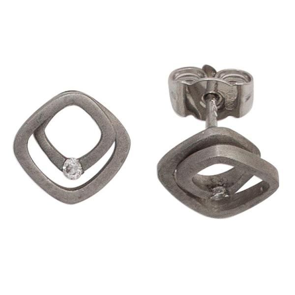 • Ohrstecker eckig 950 Platin matt 2 Diamanten Ohrringe Platinohrringe