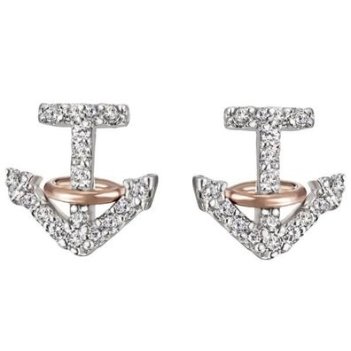 • Ohrstecker Anker 925 Sterling Silber bicolor vergoldet 36 Zirkonia