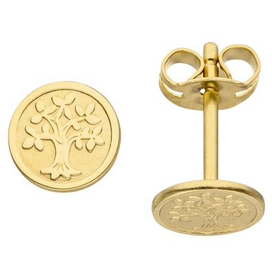 JOBO Ohrstecker Baum Lebensbaum 333 Gold Gelbgold mattiert Ohrringe