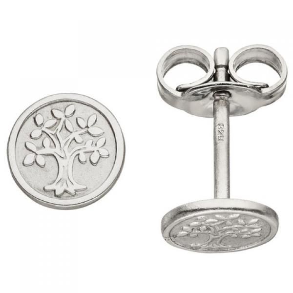 • Ohrstecker Baum Lebensbaum 925 Sterling Silber mattiert Ohrringe Silberohrringe