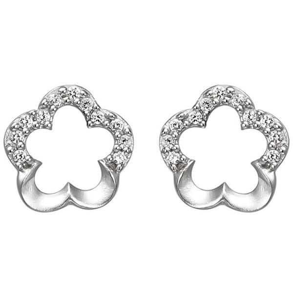 SilberDream Ohrringe Blume Zirkonia weiß Ohrstecker 925 Silber GSO213W