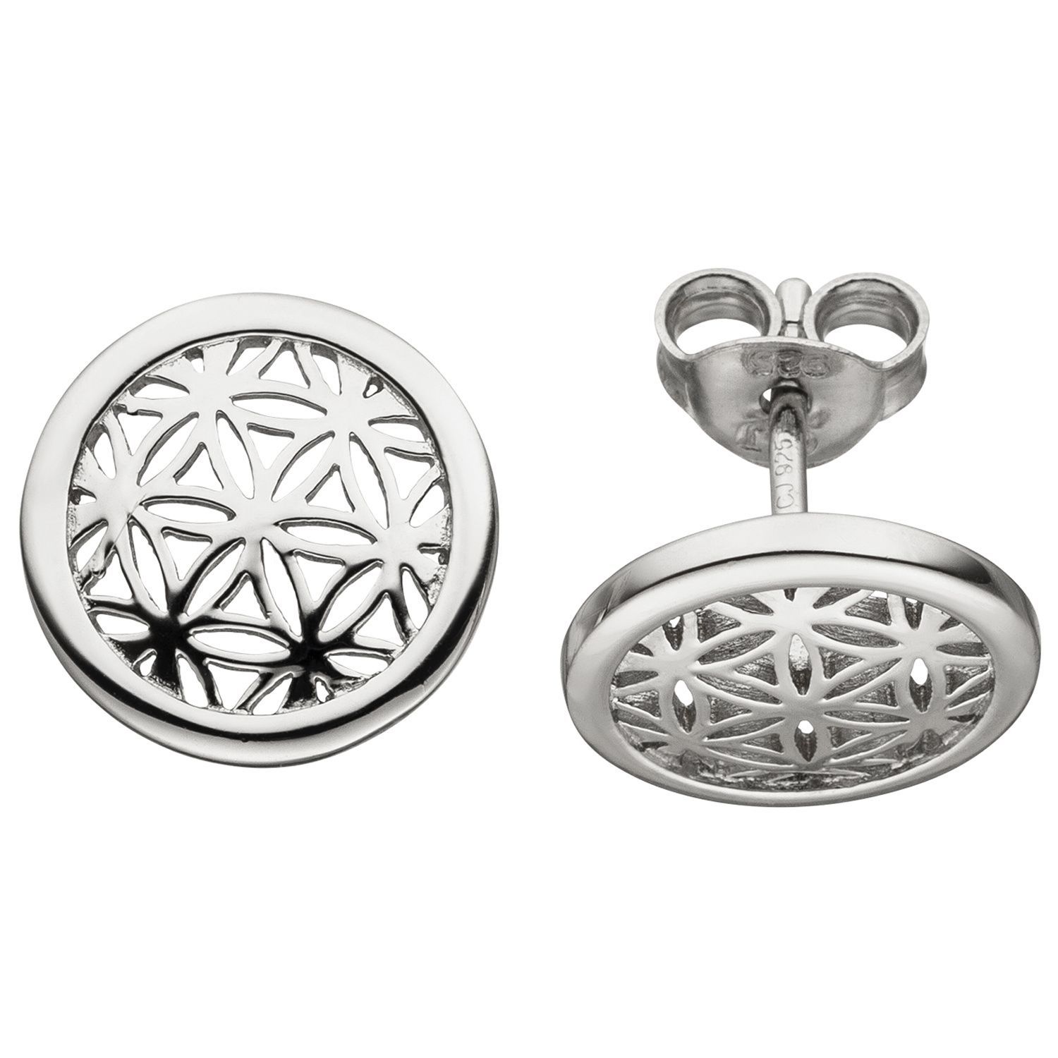 1 Paar Ohrstecker 'Blume des Lebens' aus 925 Sterlingsilber, rhodiniert, Durchmesser ca. 11,3 mm, Gewicht ca. 2,0 g * Der Artikel ist anlaufgeschützt (rhodiniert) * Bitte beachten Sie die Maße! Auf dem Foto kann der Artikel größer wirken *