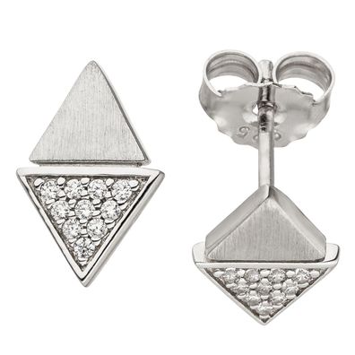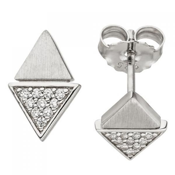 • Ohrring 925 Silber rhodiniert Zirkonia matt Ohrstecker dreieck