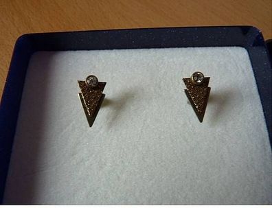 • Ohrring 375/- bicolor Gold Dreieck modern teilweise matt Zirkonia Ohrstecker