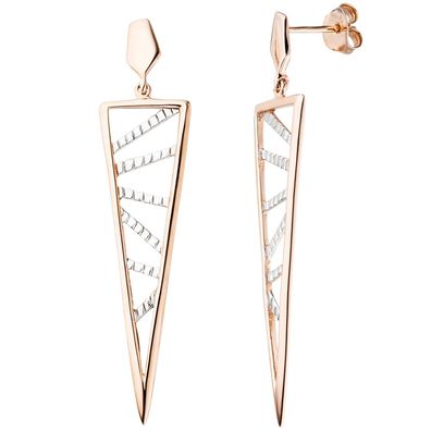 • Ohrbrisur Ohrhänger Ohrringe 40x9mm Dreieck mit Zirkonias bicolor rosé vergoldet