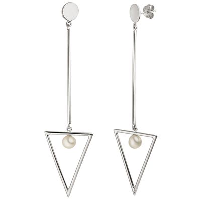 • Ohrhänger Dreieck 925 Sterling Silber 2 Süßwasser Perlen Ohrringe Ohrstecker