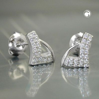 • Ohrstecker Ohrring 12x7mm Dreieck mit vielen Zirkonias rhodiniert Silber 925