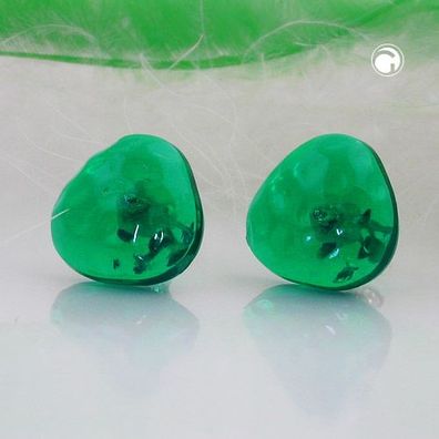 • Ohrstecker Ohrring 14mm Dreieck grün-transparent gehämmert Kunststoff