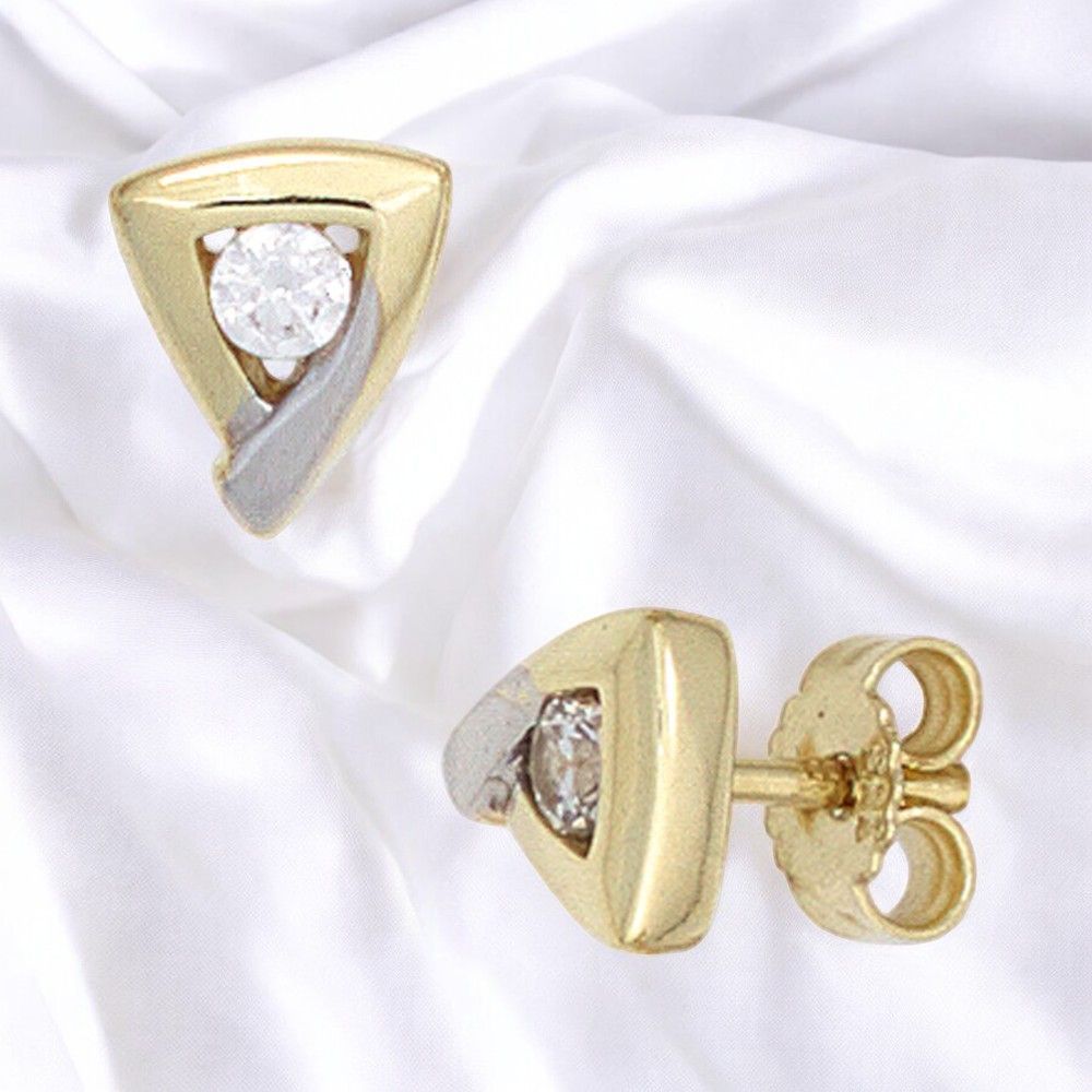 JOBO Ohrstecker dreieckig 333 Gold Gelbgold bicolor 2 Zirkonia Ohrringe