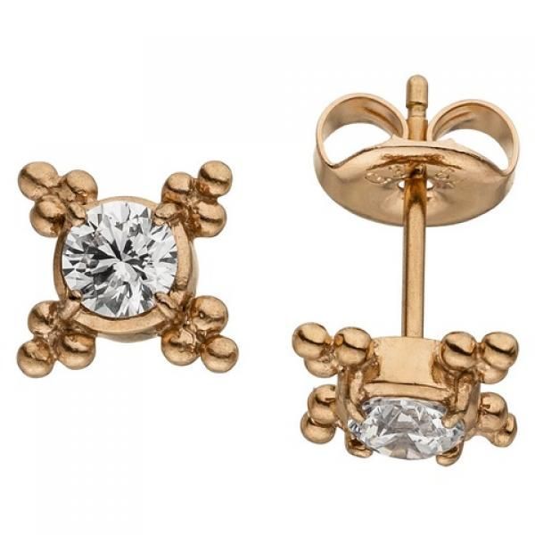 JOBO Ohrstecker Edelstahl 2 Zirkonia rotgoldfarben beschichtet Ohrringe