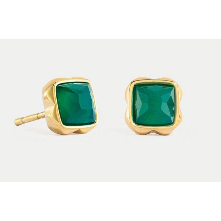 Coeur de Lion Ohrstecker - Edelstahl Gold - Grüner Achat