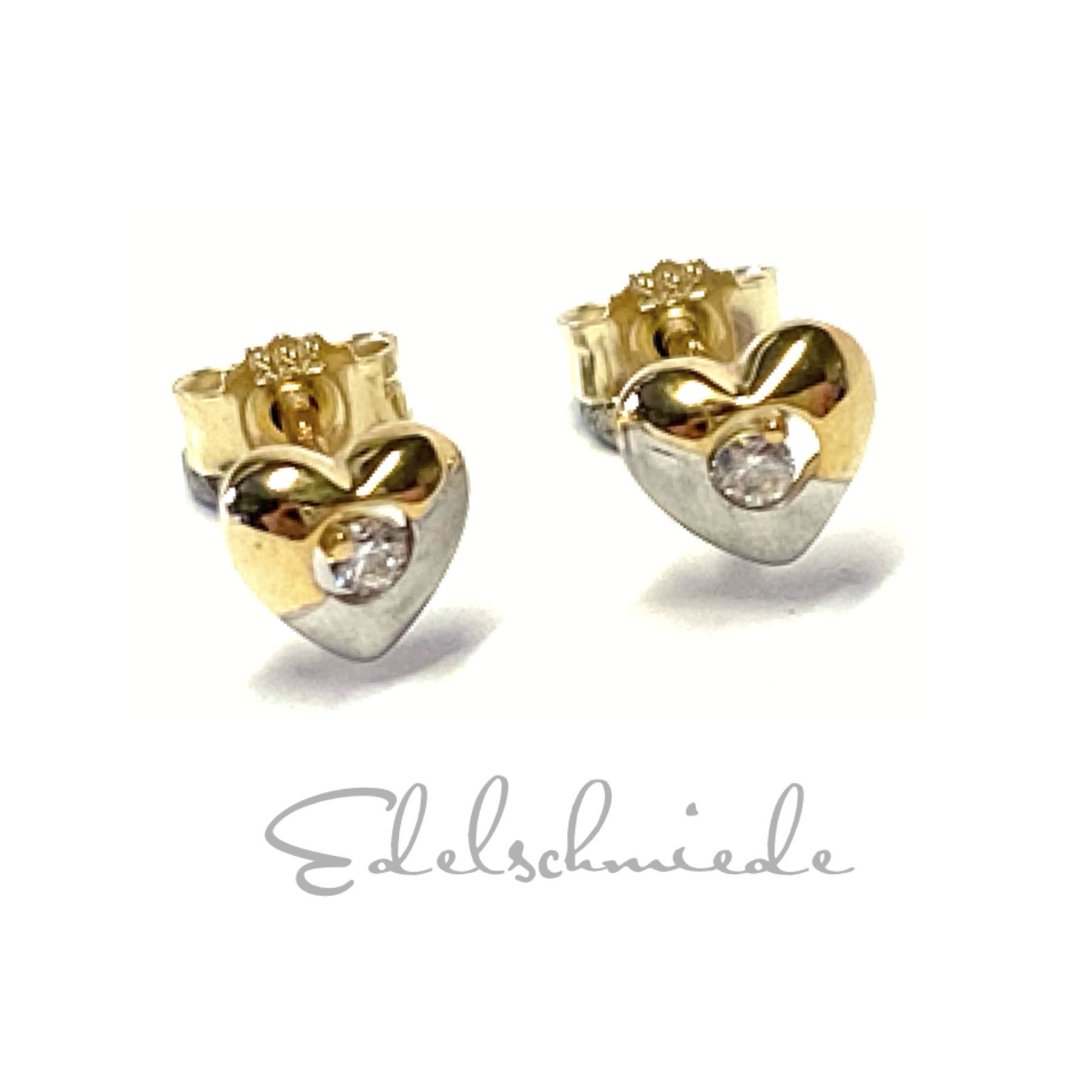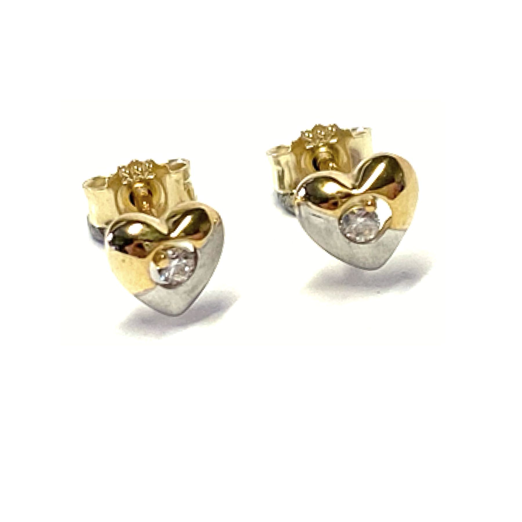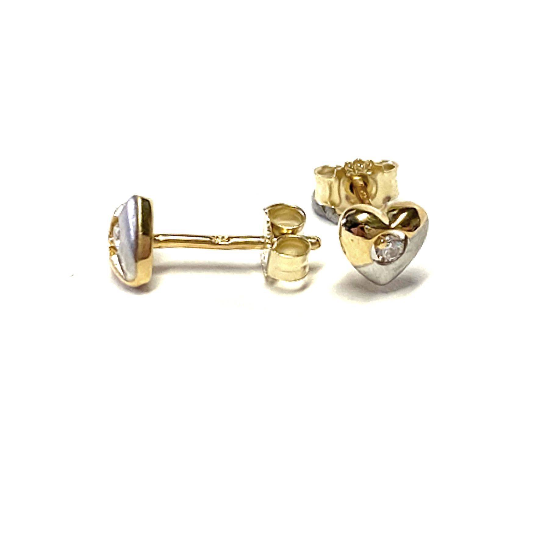 Ohrstecker Herz 333 Gelbgold bicolor Zirkonia teilweise matt