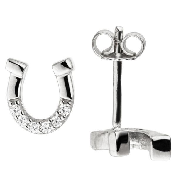 • Ohrstecker Hufeisen 925 Sterling Silber 12 Zirkonia