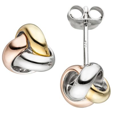 • Ohrstecker Knoten 925 Sterling Silber tricolor dreifarbig vergoldet Ohrringe