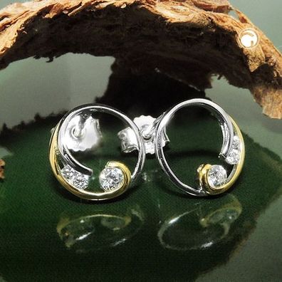 • Ohrstecker Ohrring 9mm Kreis mit Spirale bicolor mit Zirkonias Silber 925