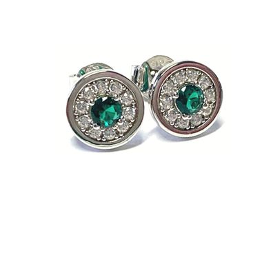 • Ohrring 925/- Silber rhodiniert Zirkonia grün weiß Ohrstecker Kreis