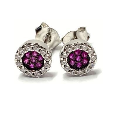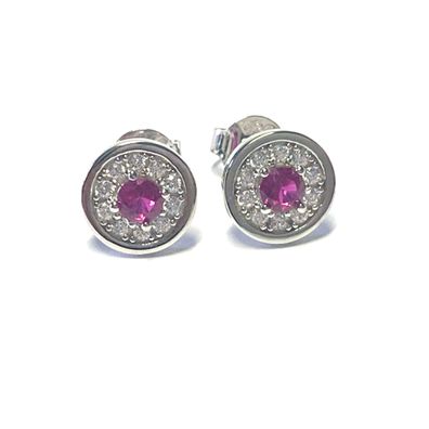 • Ohrring 925/- Silber rhodiniert Zirkonia rot weiß Ohrstecker Kreis
