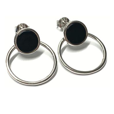 • Ohrstecker Silber Onyx Scheibe schwarz 925 Platte Kreis Ohrring