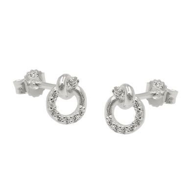 • Ohrstecker Ohrringe 7x6mm kleiner Kreis mit Knoten und Zirkonias Silber 925