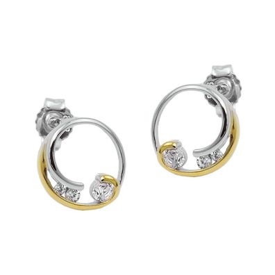 • Ohrstecker Ohrring 9mm Kreis mit Spirale bicolor mit Zirkonias Silber 925