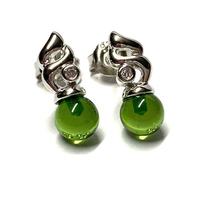 • Ohrstecker 925 Silber rhodiniert Bernstein grün (karibischer Bernstein) Kugel