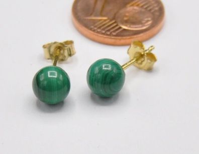 • Ohrringe Ohrstecker Malachit Kugel Perle 333 Gold