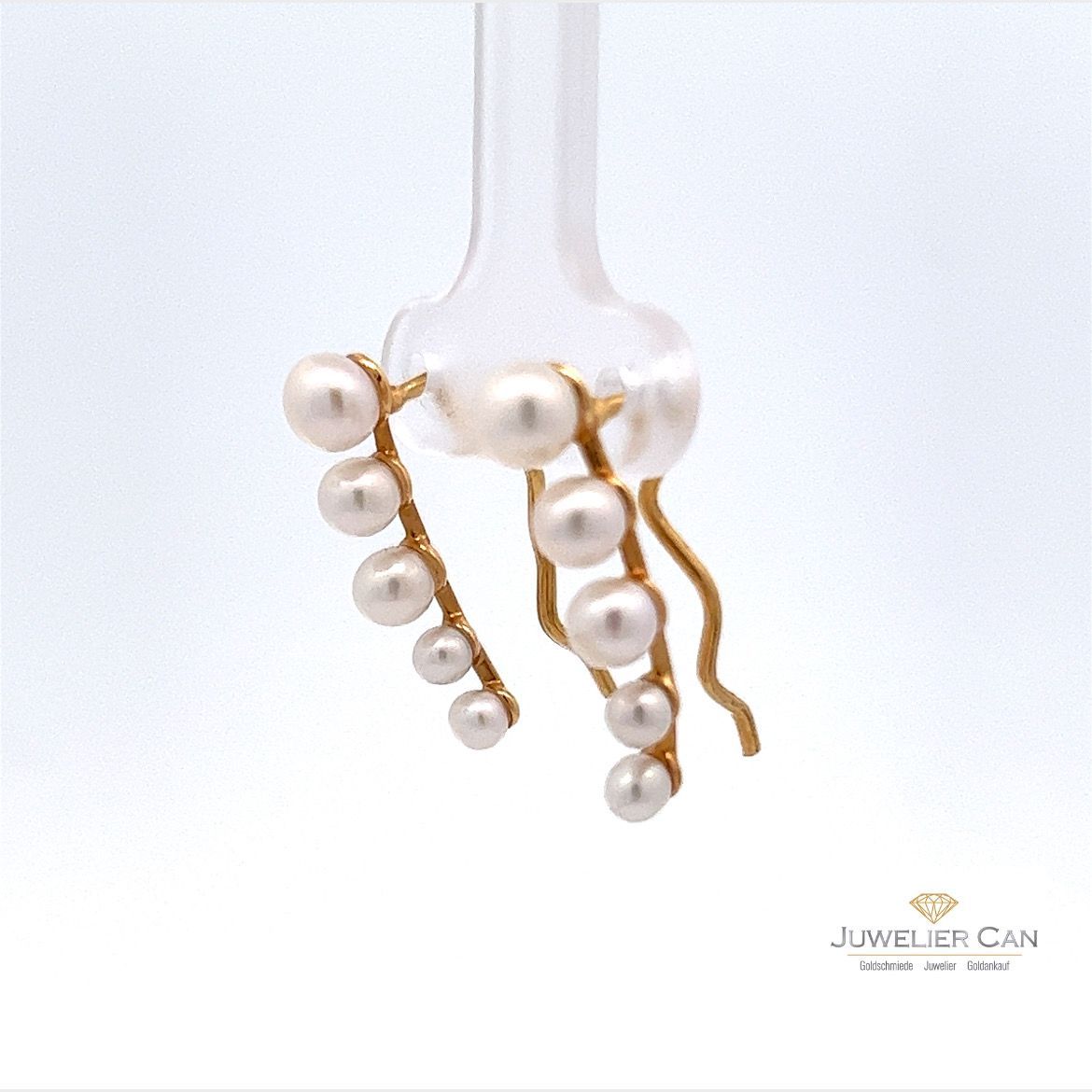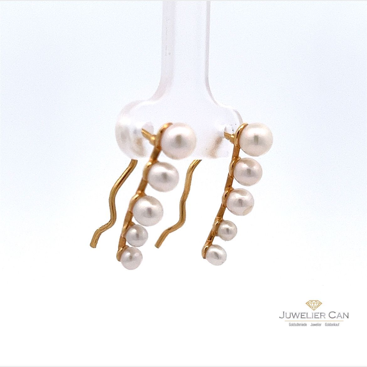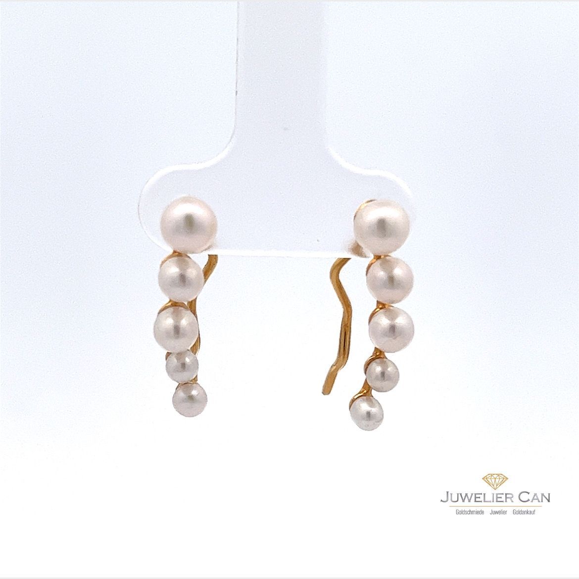 Ohrstecker mit Perlen Verlauf aus Akoya Süßwasser Zuchtperlen in Gelbgold 18 kt