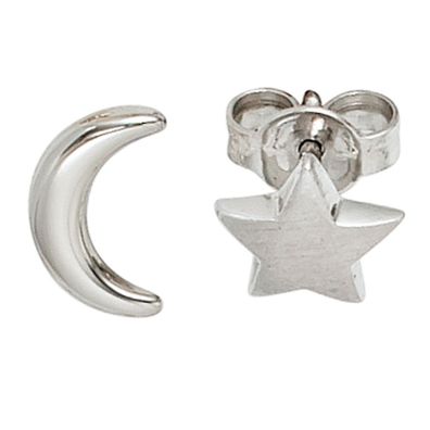 • Ohrstecker Mond Stern 925 Sterling Silber rhodiniert mattiert Ohrringe