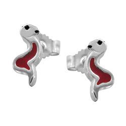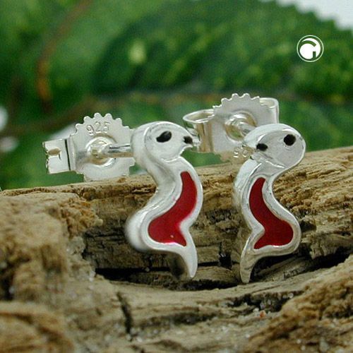 Gallay Ohrstecker Ohrring 10x4mm Kinderohrring Schlange rot-schwarz Silber 925