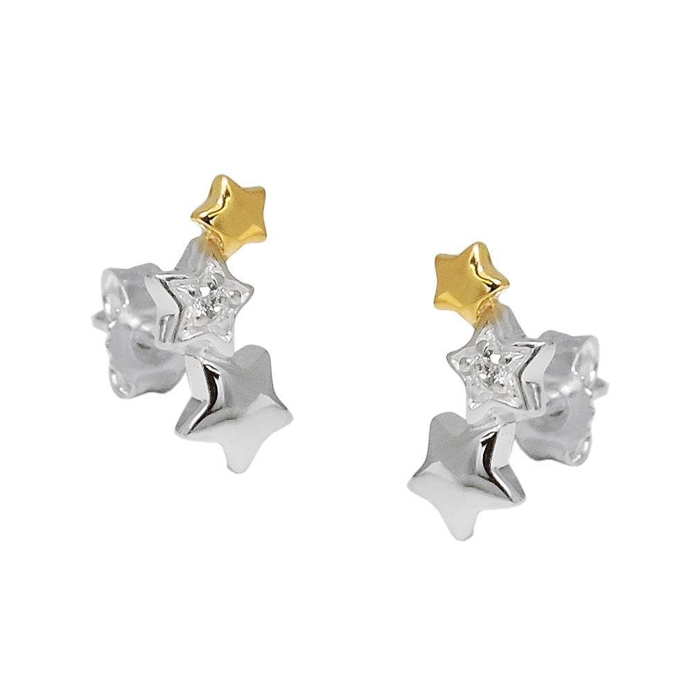 Gallay Ohrstecker Ohrring 11x5mm Sternentrio mit Zirkonia bicolor Silber 925