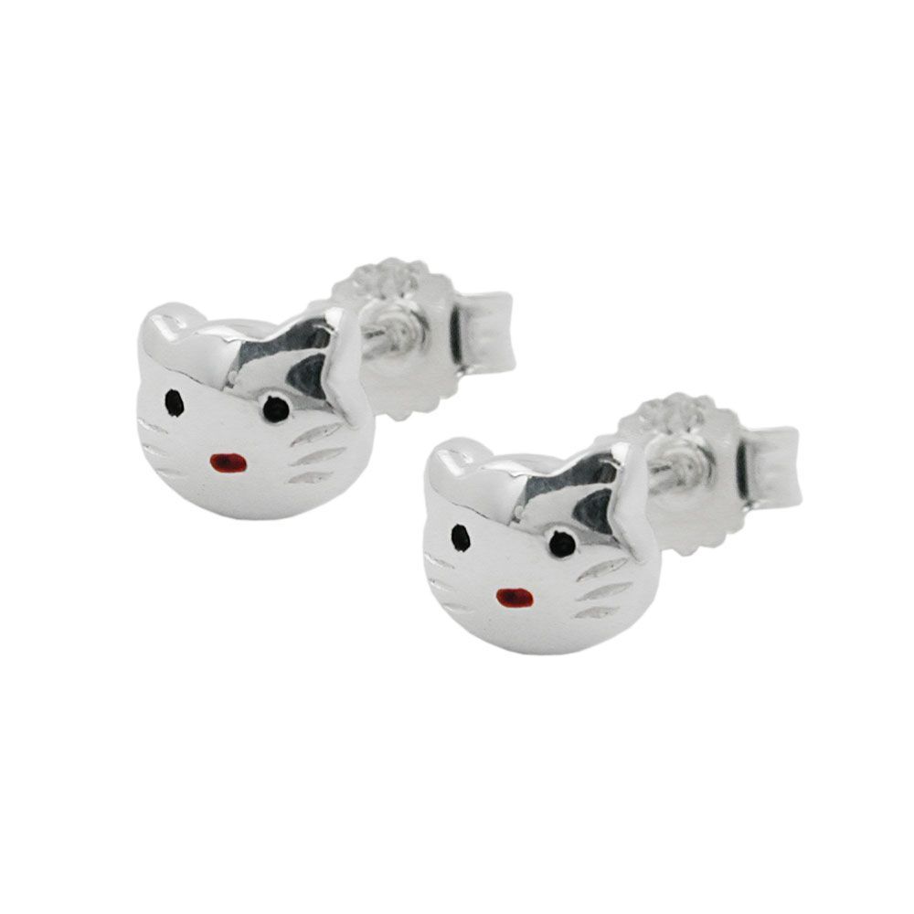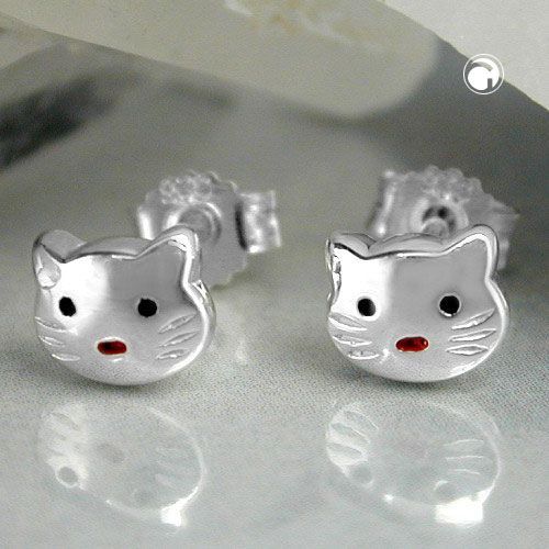 Gallay Ohrstecker Ohrring 5x6mm Kinderohrring Katzenkopf rot-schwarz lackiert glänzend