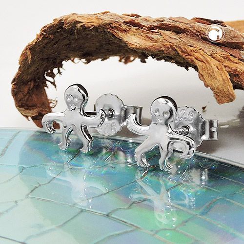 Ohrstecker Ohrring 8x9mm Krake glänzend rhodiniert Silber 925