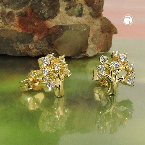 Gallay Ohrstecker Ohrring 9x8mm Baum mit Zirkonias GOLD 9Kt