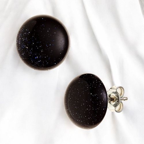 JOBO Ohrstecker rund 925 Sterling Silber 2 Goldfluss-Steine blau Ohrringe
