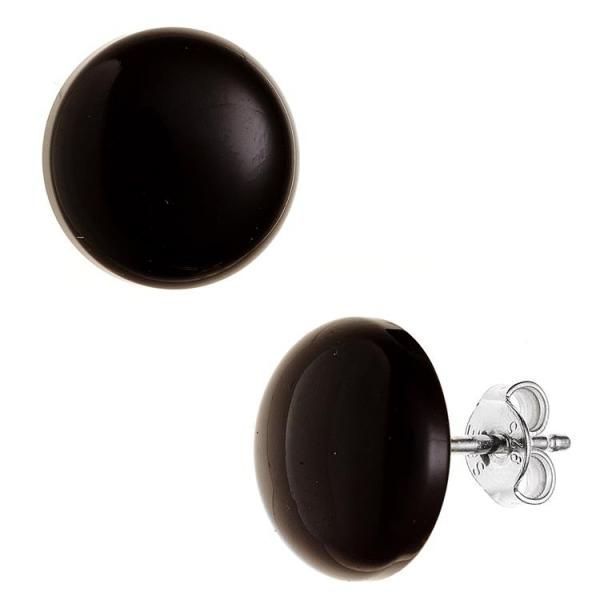JOBO Ohrstecker rund 925 Sterling Silber 2 Onyxe schwarz