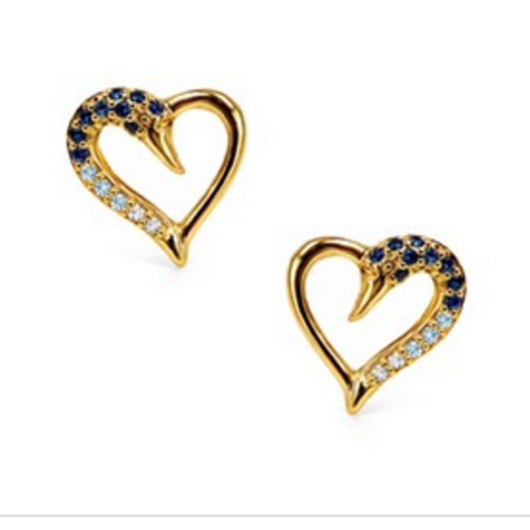 Ohrstecker - Silber gold - Azur Schwan Herz