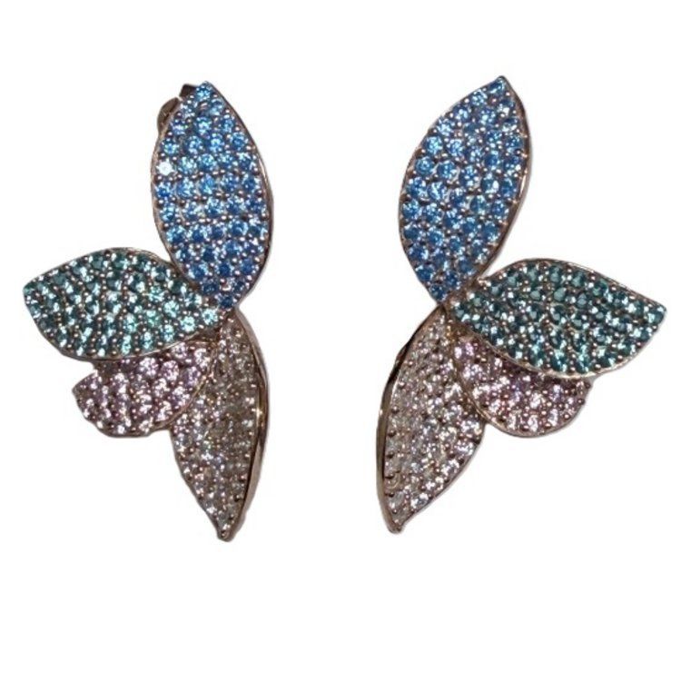 Ohrstecker - Silber rosé - Blätter mehrfarbig