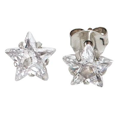 • Ohrstecker Stern Sterne 925 Sterling Silber rhodiniert mit Zirkonia Ohrringe