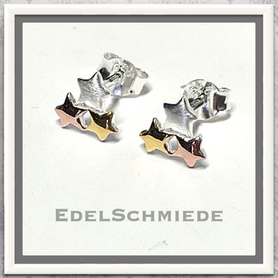 • kleine Ohrstecker tricolor 925 Silber mit Sternen