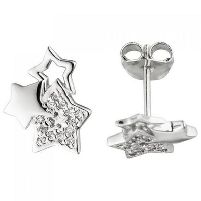 • Ohrstecker Stern Sterne 925 Sterling Silber rhodiniert mit Zirkonia Ohrringe