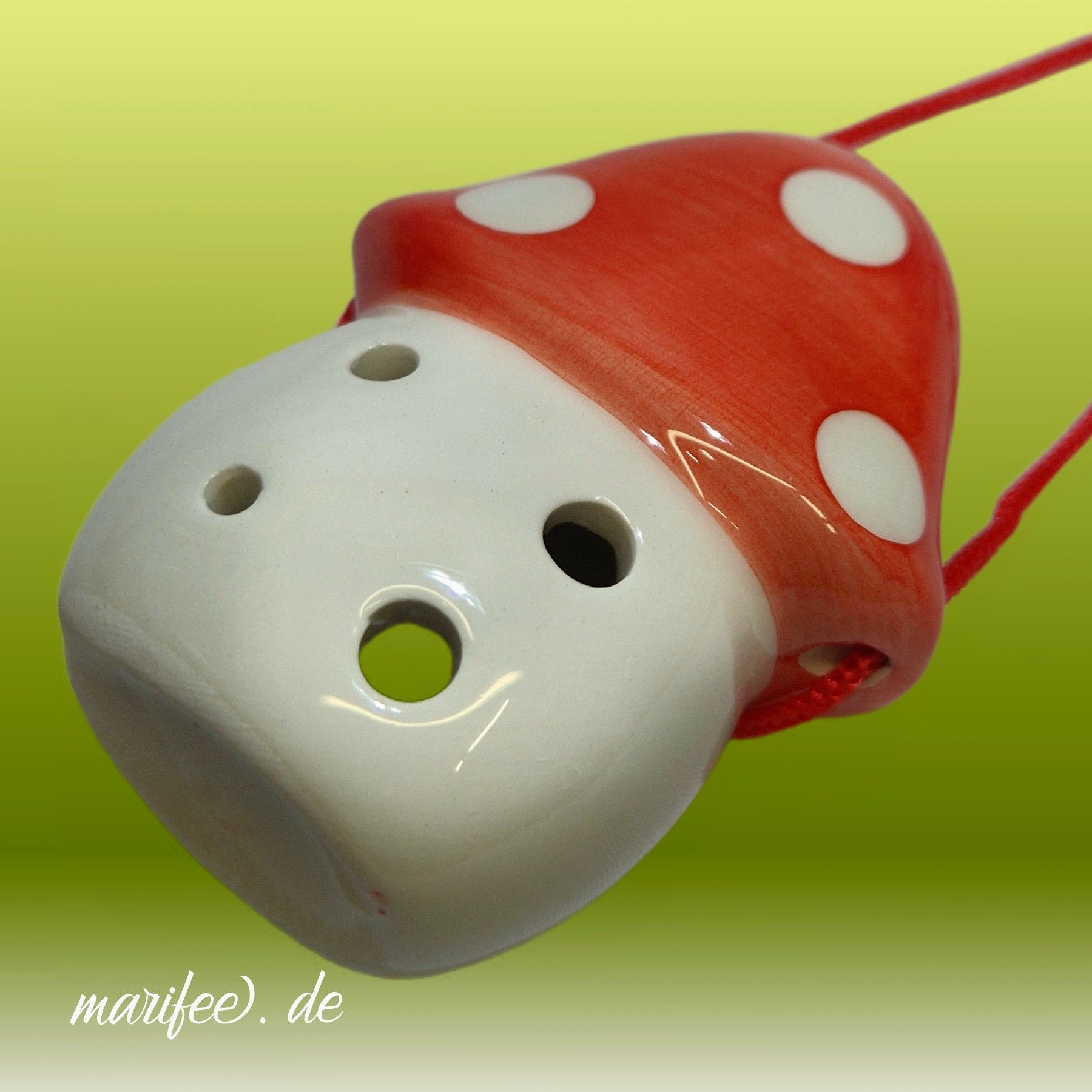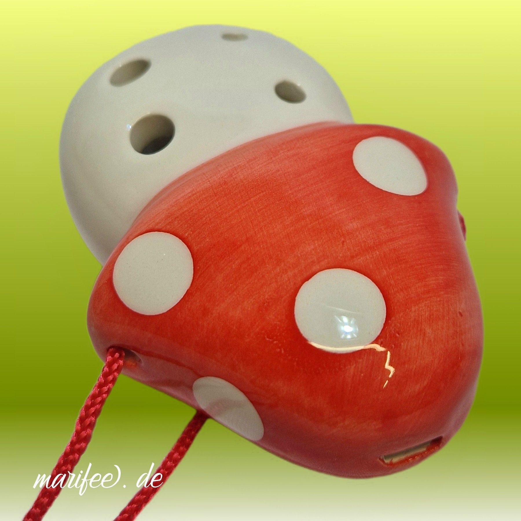 Okarina, 6-Loch-Kinderflöte aus Porzellan, Pilz, Rot-Weiss Art.-Nr. 11166