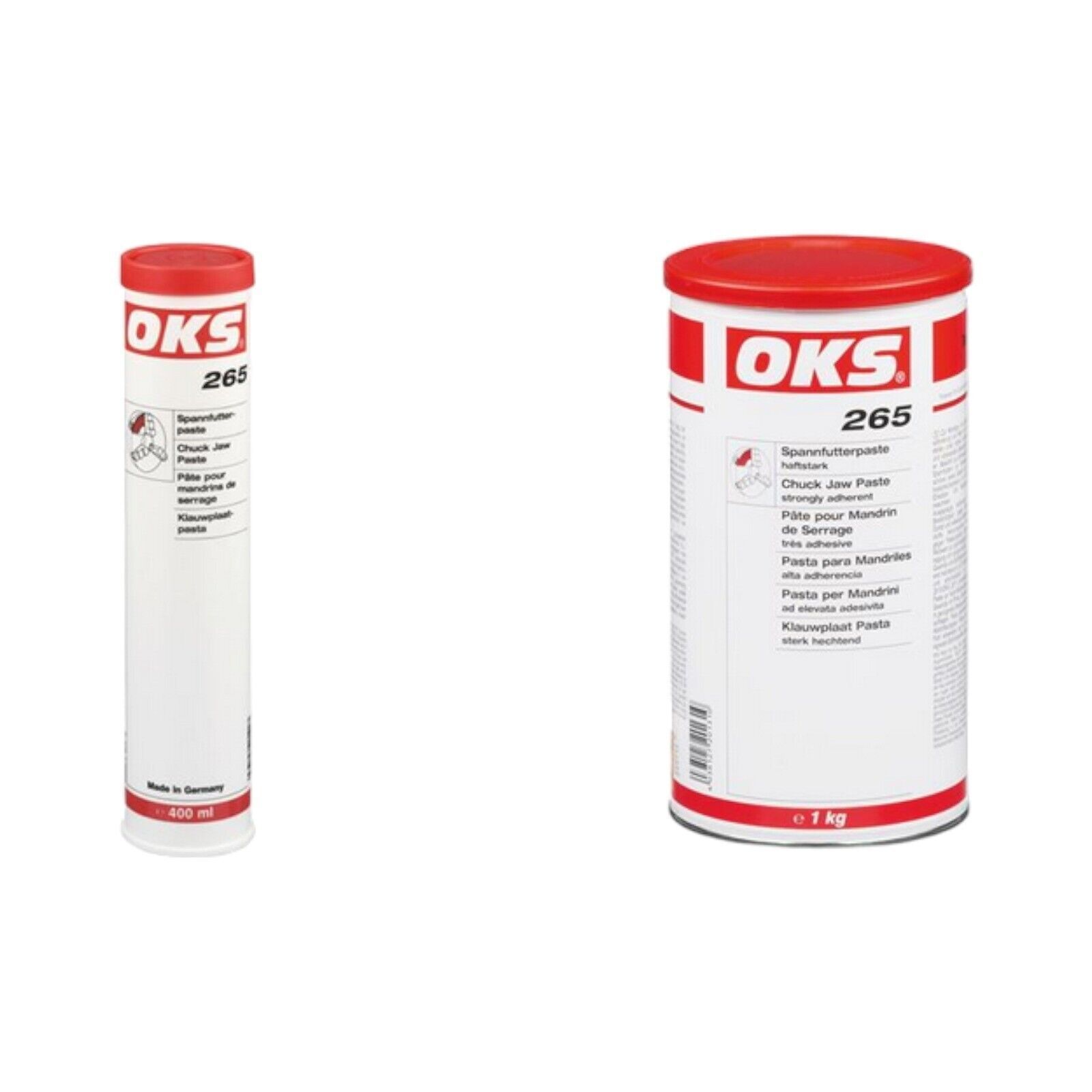 OKS 265 - Spannfutterpaste Temperaturbereich -45°C - 110°C OKS 265 - 400ML OKS 265 - 1KG OKS 265 - 5KG OKS 265 - 25KG Sollten Sie größere Mengen oder abweichende Produkte benötigen können Sie uns jederzeit kontaktieren. Bitte besuchen Sie auch unseren Shop wir haben weitere interessante Arti