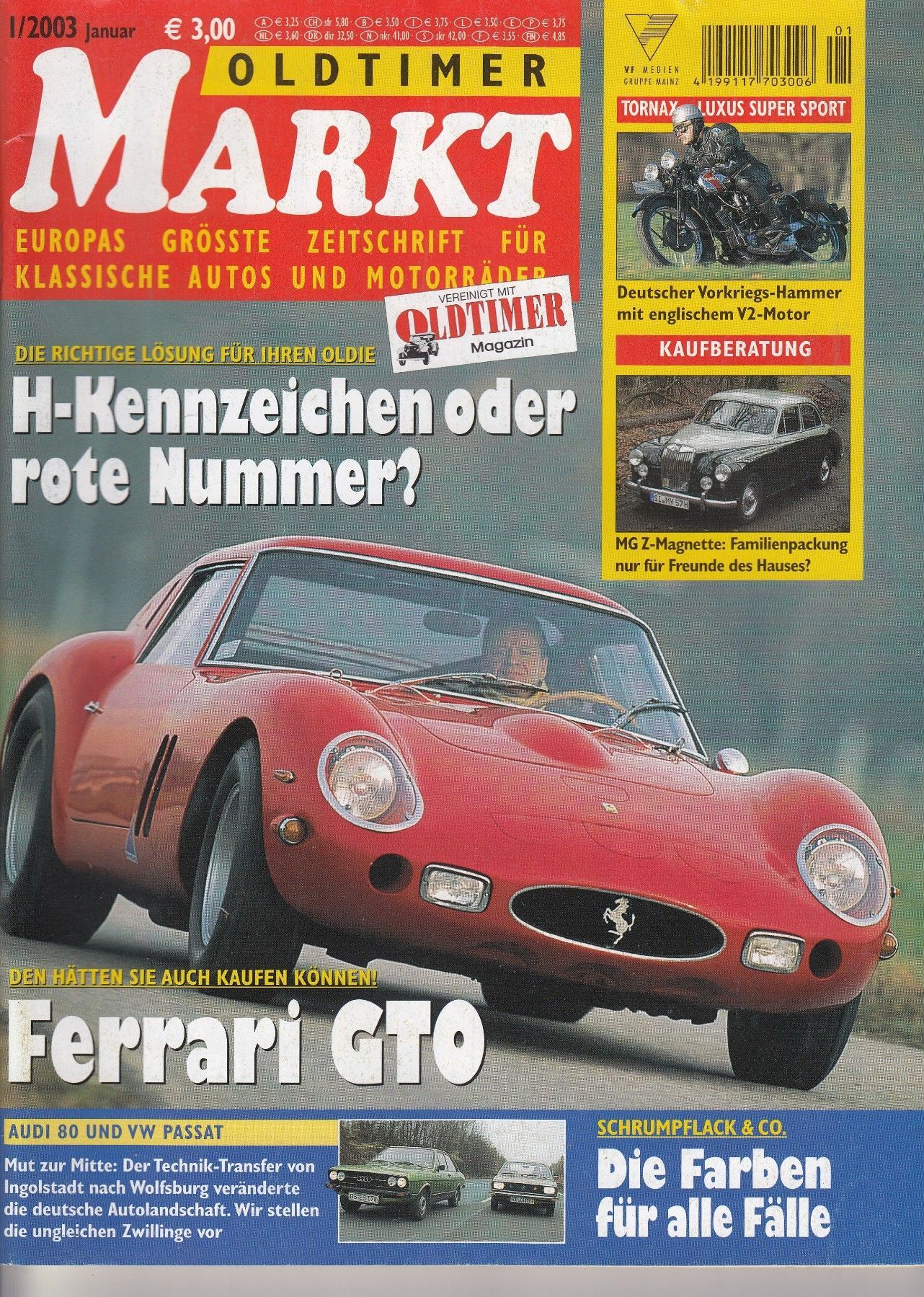 Oldtimer Markt 1/ 2003 - Ferrari GTO, MG Z, Tornax , Audi 80, VW Passat